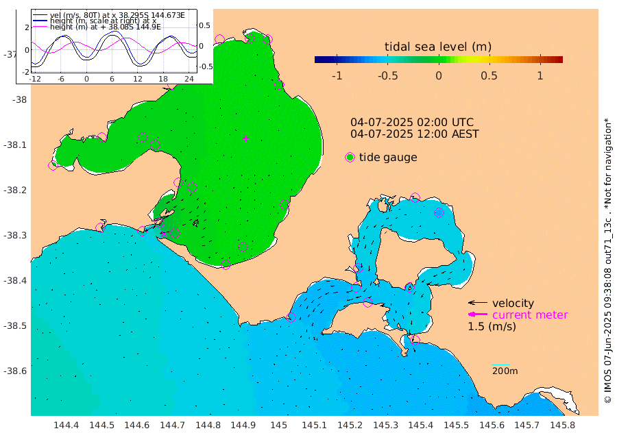 -62cm San Remo -56cm Elizabeth Island -61cm Bouchier Channel -52cm Tooradin -59cm Cowes Jetty -63cm Western Port (Stony Point) -53cm Western Port (Sandy Point) -56cm Flinders Jetty -1cm Mornington -3cm Sandringham -1cm Rosebud Jetty -1cm Hovell Pile -13cm South Channel -31cm Point Lonsdale -18cm Queenscliff -2cm West Channel Pile -40cm Barwon Heads -2cm St Leonards -2cm Point Richards (Corio Bay) -3cm Point Richards Channel 0cm Geelong -1cm Werribee -3cm Altona -2cm Wilson Spit -1cm Melbourne (Williamstown) -1cm St Kilda