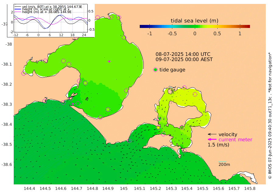 8cm San Remo 14cm Elizabeth Island 31cm Bouchier Channel 35cm Tooradin 1cm Cowes Jetty 5cm Western Port (Stony Point) 31cm Western Port (Sandy Point) -22cm Flinders Jetty 16cm Mornington 17cm Sandringham 15cm Rosebud Jetty 16cm Hovell Pile 2cm South Channel -13cm Point Lonsdale -2cm Queenscliff 16cm West Channel Pile -19cm Barwon Heads 14cm St Leonards 18cm Point Richards (Corio Bay) 17cm Point Richards Channel 20cm Geelong 16cm Werribee 17cm Altona 18cm Wilson Spit 18cm Melbourne (Williamstown) 18cm St Kilda