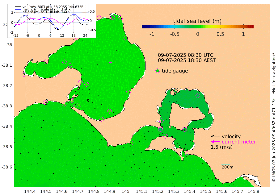 -8cm San Remo -5cm Elizabeth Island -20cm Bouchier Channel -23cm Tooradin -4cm Cowes Jetty -4cm Western Port (Stony Point) -19cm Western Port (Sandy Point) 9cm Flinders Jetty 10cm Mornington 7cm Sandringham 10cm Rosebud Jetty 9cm Hovell Pile 10cm South Channel 9cm Point Lonsdale 12cm Queenscliff 8cm West Channel Pile 4cm Barwon Heads 9cm St Leonards 7cm Point Richards (Corio Bay) 7cm Point Richards Channel 6cm Geelong 8cm Werribee 7cm Altona 7cm Wilson Spit 7cm Melbourne (Williamstown) 8cm St Kilda