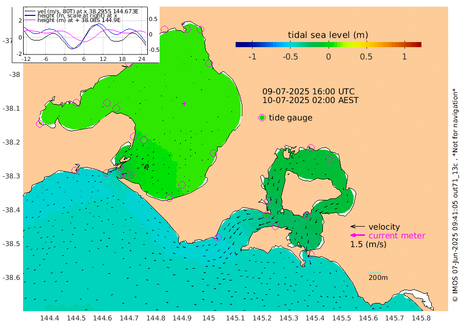 -33cm San Remo -26cm Elizabeth Island -9cm Bouchier Channel 0cm Tooradin -34cm Cowes Jetty -33cm Western Port (Stony Point) -8cm Western Port (Sandy Point) -56cm Flinders Jetty 10cm Mornington 10cm Sandringham 8cm Rosebud Jetty 8cm Hovell Pile -10cm South Channel -33cm Point Lonsdale -17cm Queenscliff 8cm West Channel Pile -42cm Barwon Heads 7cm St Leonards 11cm Point Richards (Corio Bay) 10cm Point Richards Channel 14cm Geelong 12cm Werribee 10cm Altona 11cm Wilson Spit 11cm Melbourne (Williamstown) 11cm St Kilda