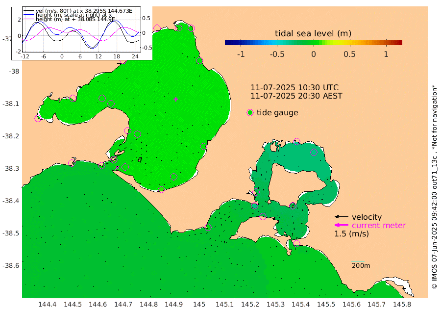 -19cm San Remo -15cm Elizabeth Island -32cm Bouchier Channel -36cm Tooradin -16cm Cowes Jetty -17cm Western Port (Stony Point) -31cm Western Port (Sandy Point) 1cm Flinders Jetty 7cm Mornington 6cm Sandringham 9cm Rosebud Jetty 7cm Hovell Pile 7cm South Channel 3cm Point Lonsdale 8cm Queenscliff 7cm West Channel Pile -4cm Barwon Heads 6cm St Leonards 5cm Point Richards (Corio Bay) 4cm Point Richards Channel 4cm Geelong 6cm Werribee 5cm Altona 4cm Wilson Spit 5cm Melbourne (Williamstown) 5cm St Kilda