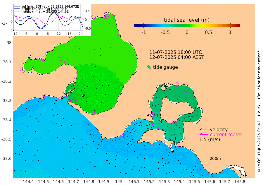 -41cm San Remo -34cm Elizabeth Island -15cm Bouchier Channel -2cm Tooradin -42cm Cowes Jetty -39cm Western Port (Stony Point) -14cm Western Port (Sandy Point) -67cm Flinders Jetty 8cm Mornington 9cm Sandringham 6cm Rosebud Jetty 7cm Hovell Pile -14cm South Channel -40cm Point Lonsdale -22cm Queenscliff 7cm West Channel Pile -51cm Barwon Heads 6cm St Leonards 10cm Point Richards (Corio Bay) 9cm Point Richards Channel 13cm Geelong 12cm Werribee 9cm Altona 10cm Wilson Spit 10cm Melbourne (Williamstown) 10cm St Kilda