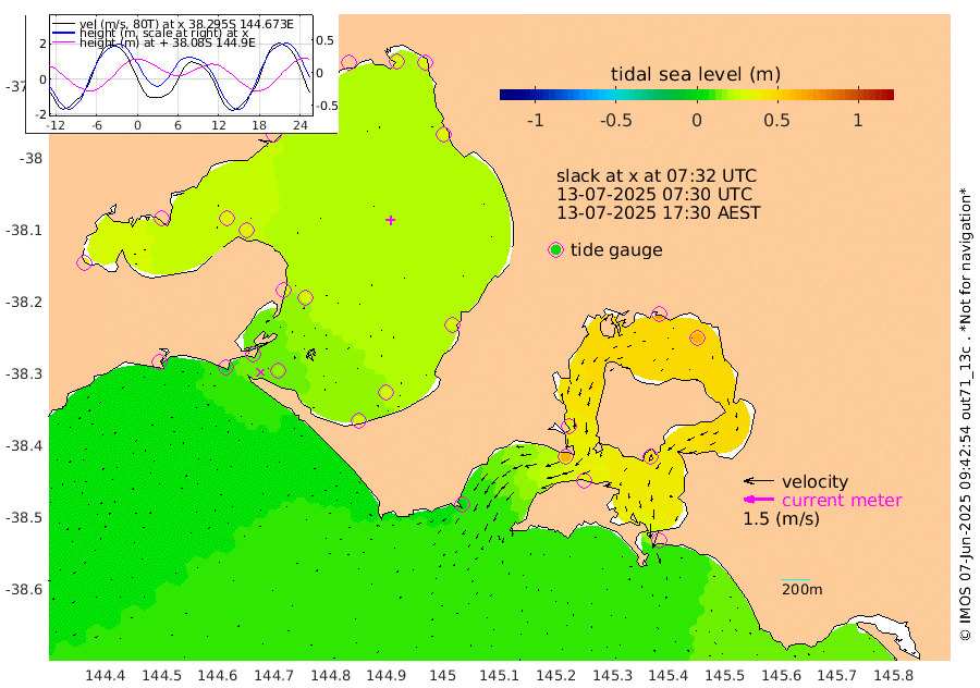 32cm San Remo 41cm Elizabeth Island 63cm Bouchier Channel 68cm Tooradin 30cm Cowes Jetty 37cm Western Port (Stony Point) 61cm Western Port (Sandy Point) 3cm Flinders Jetty 29cm Mornington 31cm Sandringham 27cm Rosebud Jetty 27cm Hovell Pile 16cm South Channel 7cm Point Lonsdale 13cm Queenscliff 27cm West Channel Pile -1cm Barwon Heads 29cm St Leonards 32cm Point Richards (Corio Bay) 31cm Point Richards Channel 34cm Geelong 27cm Werribee 31cm Altona 34cm Wilson Spit 30cm Melbourne (Williamstown) 31cm St Kilda