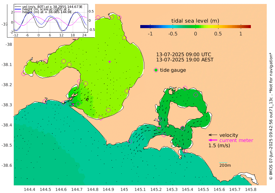 -28cm San Remo -15cm Elizabeth Island -5cm Bouchier Channel 2cm Tooradin -25cm Cowes Jetty -21cm Western Port (Stony Point) -7cm Western Port (Sandy Point) -36cm Flinders Jetty 24cm Mornington 25cm Sandringham 22cm Rosebud Jetty 21cm Hovell Pile 4cm South Channel -16cm Point Lonsdale -1cm Queenscliff 21cm West Channel Pile -32cm Barwon Heads 21cm St Leonards 24cm Point Richards (Corio Bay) 23cm Point Richards Channel 26cm Geelong 23cm Werribee 24cm Altona 25cm Wilson Spit 23cm Melbourne (Williamstown) 23cm St Kilda