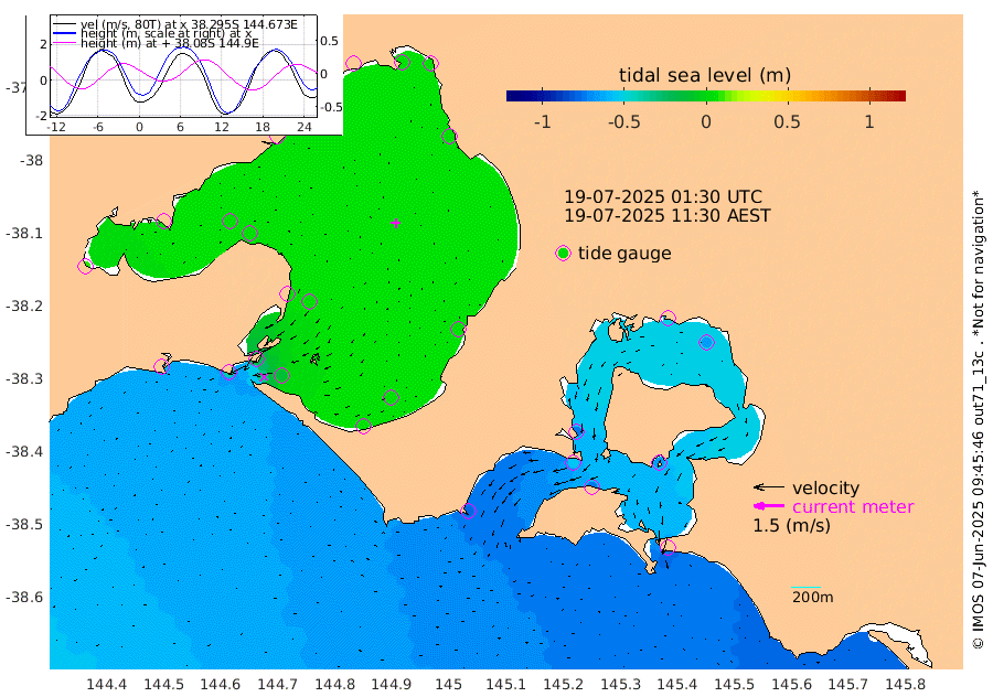 -74cm San Remo -66cm Elizabeth Island -64cm Bouchier Channel -51cm Tooradin -75cm Cowes Jetty -74cm Western Port (Stony Point) -54cm Western Port (Sandy Point) -76cm Flinders Jetty 5cm Mornington 6cm Sandringham 6cm Rosebud Jetty 6cm Hovell Pile -13cm South Channel -40cm Point Lonsdale -20cm Queenscliff 5cm West Channel Pile -55cm Barwon Heads 4cm St Leonards 7cm Point Richards (Corio Bay) 4cm Point Richards Channel 9cm Geelong 7cm Werribee 6cm Altona 6cm Wilson Spit 7cm Melbourne (Williamstown) 7cm St Kilda