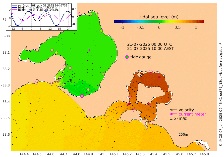 85cm San Remo 90cm Elizabeth Island 109cm Bouchier Channel 111cm Tooradin 74cm Cowes Jetty 79cm Western Port (Stony Point) 113cm Western Port (Sandy Point) 43cm Flinders Jetty 14cm Mornington 17cm Sandringham 14cm Rosebud Jetty 15cm Hovell Pile 17cm South Channel 23cm Point Lonsdale 16cm Queenscliff 16cm West Channel Pile 25cm Barwon Heads 16cm St Leonards 19cm Point Richards (Corio Bay) 18cm Point Richards Channel 21cm Geelong 11cm Werribee 18cm Altona 19cm Wilson Spit 18cm Melbourne (Williamstown) 18cm St Kilda