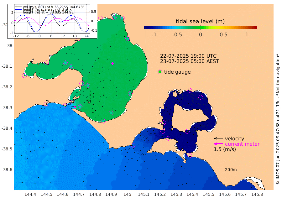 -119cm San Remo -126cm Elizabeth Island -138cm Bouchier Channel -133cm Tooradin -106cm Cowes Jetty -114cm Western Port (Stony Point) -142cm Western Port (Sandy Point) -76cm Flinders Jetty -35cm Mornington -37cm Sandringham -36cm Rosebud Jetty -36cm Hovell Pile -39cm South Channel -48cm Point Lonsdale -41cm Queenscliff -37cm West Channel Pile -49cm Barwon Heads -36cm St Leonards -40cm Point Richards (Corio Bay) -38cm Point Richards Channel -40cm Geelong -30cm Werribee -37cm Altona -39cm Wilson Spit -38cm Melbourne (Williamstown) -38cm St Kilda