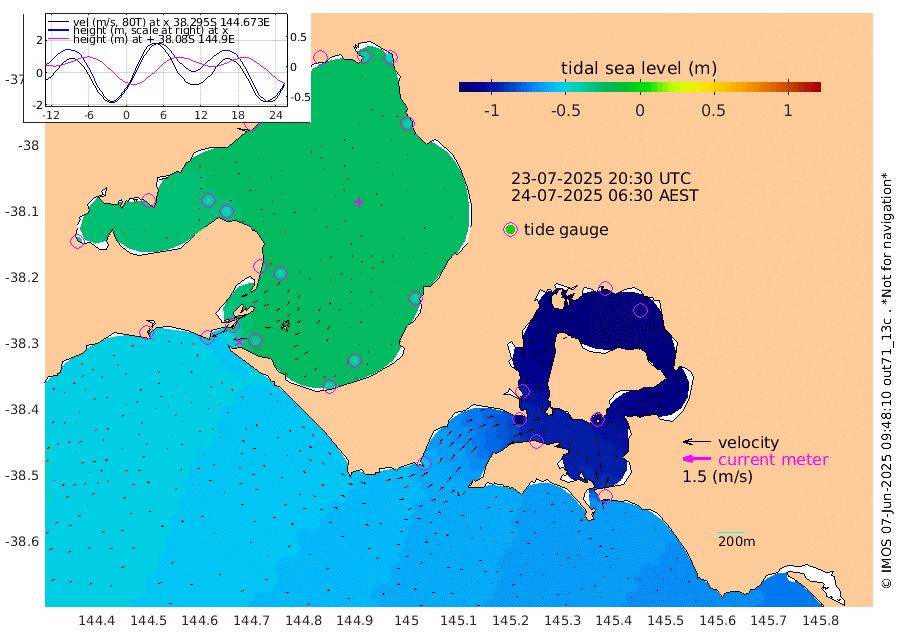 -100cm San Remo -108cm Elizabeth Island -123cm Bouchier Channel -119cm Tooradin -88cm Cowes Jetty -95cm Western Port (Stony Point) -127cm Western Port (Sandy Point) -56cm Flinders Jetty -38cm Mornington -40cm Sandringham -39cm Rosebud Jetty -38cm Hovell Pile -37cm South Channel -39cm Point Lonsdale -37cm Queenscliff -39cm West Channel Pile -36cm Barwon Heads -38cm St Leonards -43cm Point Richards (Corio Bay) -41cm Point Richards Channel -43cm Geelong -33cm Werribee -40cm Altona -42cm Wilson Spit -41cm Melbourne (Williamstown) -42cm St Kilda