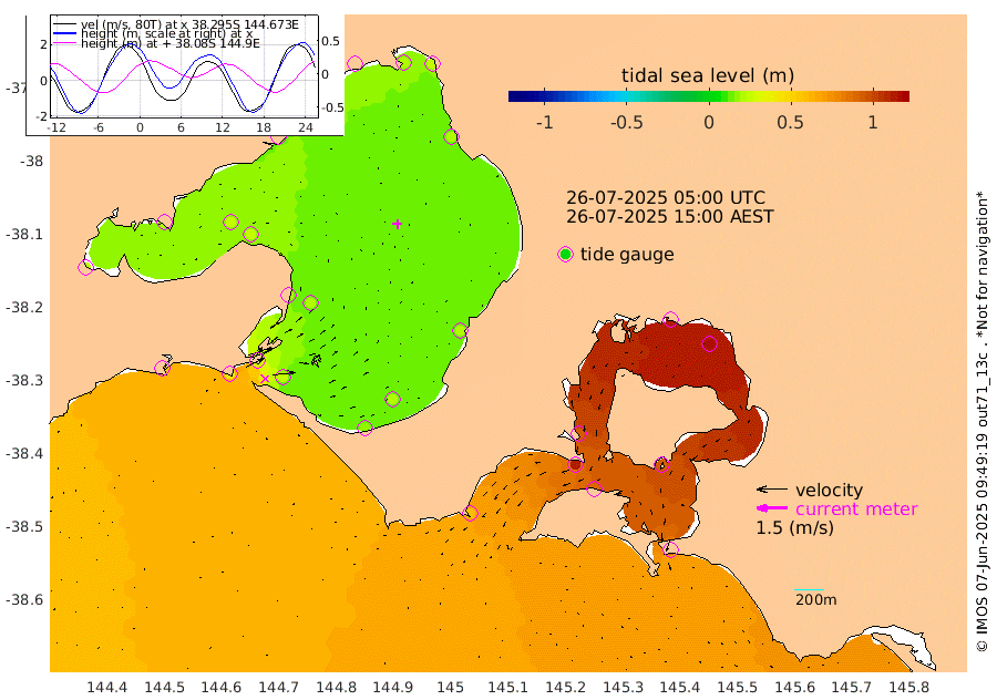 93cm San Remo 94cm Elizabeth Island 115cm Bouchier Channel 110cm Tooradin 88cm Cowes Jetty 92cm Western Port (Stony Point) 112cm Western Port (Sandy Point) 60cm Flinders Jetty 21cm Mornington 21cm Sandringham 19cm Rosebud Jetty 20cm Hovell Pile 25cm South Channel 39cm Point Lonsdale 27cm Queenscliff 21cm West Channel Pile 46cm Barwon Heads 22cm St Leonards 24cm Point Richards (Corio Bay) 25cm Point Richards Channel 24cm Geelong 18cm Werribee 23cm Altona 25cm Wilson Spit 22cm Melbourne (Williamstown) 23cm St Kilda