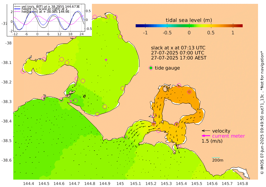 50cm San Remo 60cm Elizabeth Island 85cm Bouchier Channel 87cm Tooradin 47cm Cowes Jetty 52cm Western Port (Stony Point) 83cm Western Port (Sandy Point) 12cm Flinders Jetty 30cm Mornington 31cm Sandringham 27cm Rosebud Jetty 27cm Hovell Pile 18cm South Channel 11cm Point Lonsdale 14cm Queenscliff 28cm West Channel Pile 5cm Barwon Heads 30cm St Leonards 33cm Point Richards (Corio Bay) 33cm Point Richards Channel 35cm Geelong 27cm Werribee 32cm Altona 35cm Wilson Spit 31cm Melbourne (Williamstown) 32cm St Kilda