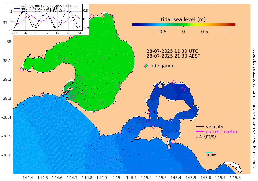 -91cm San Remo -82cm Elizabeth Island -90cm Bouchier Channel -85cm Tooradin -86cm Cowes Jetty -87cm Western Port (Stony Point) -89cm Western Port (Sandy Point) -71cm Flinders Jetty -2cm Mornington -2cm Sandringham -2cm Rosebud Jetty -2cm Hovell Pile -16cm South Channel -40cm Point Lonsdale -22cm Queenscliff -3cm West Channel Pile -52cm Barwon Heads -5cm St Leonards -4cm Point Richards (Corio Bay) -5cm Point Richards Channel -2cm Geelong -2cm Werribee -3cm Altona -5cm Wilson Spit -3cm Melbourne (Williamstown) -4cm St Kilda