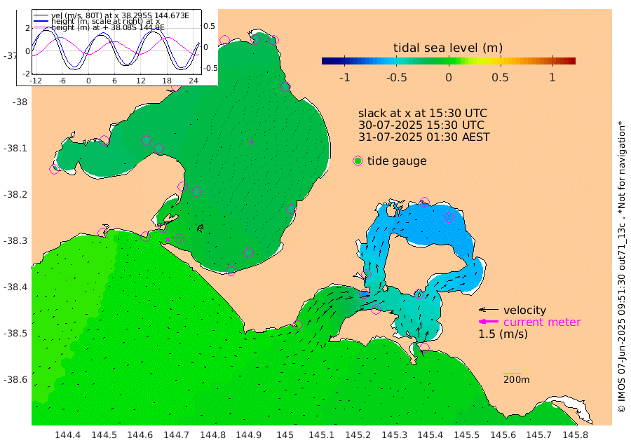 -31cm San Remo -44cm Elizabeth Island -65cm Bouchier Channel -75cm Tooradin -26cm Cowes Jetty -31cm Western Port (Stony Point) -69cm Western Port (Sandy Point) 10cm Flinders Jetty -27cm Mornington -27cm Sandringham -24cm Rosebud Jetty -24cm Hovell Pile -8cm South Channel 8cm Point Lonsdale -3cm Queenscliff -24cm West Channel Pile 17cm Barwon Heads -27cm St Leonards -29cm Point Richards (Corio Bay) -29cm Point Richards Channel -32cm Geelong -25cm Werribee -28cm Altona -32cm Wilson Spit -27cm Melbourne (Williamstown) -28cm St Kilda