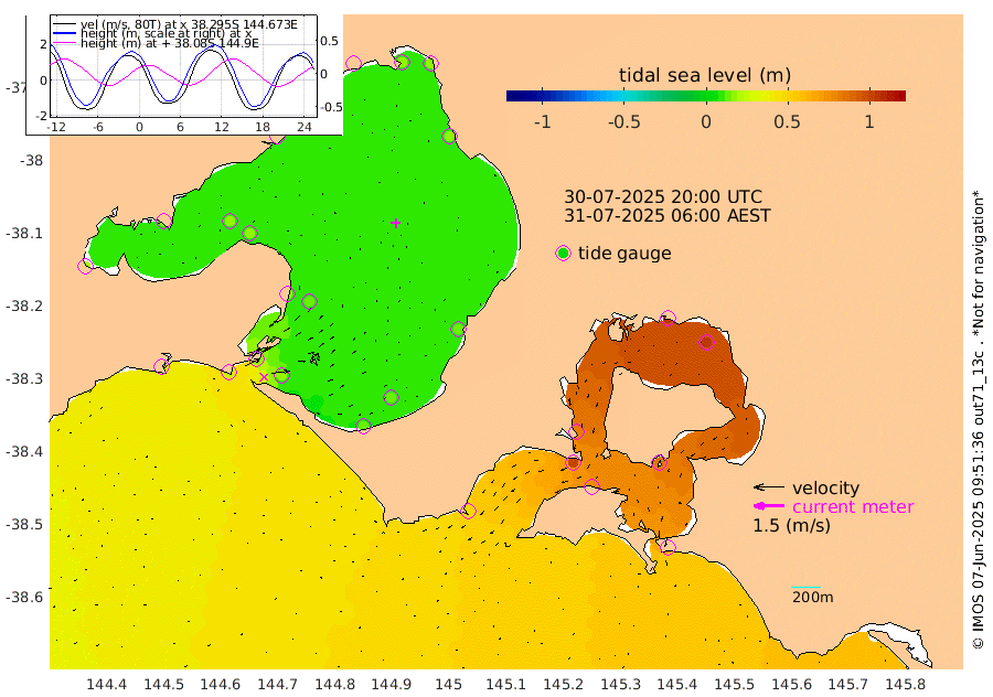 81cm San Remo 83cm Elizabeth Island 101cm Bouchier Channel 103cm Tooradin 76cm Cowes Jetty 80cm Western Port (Stony Point) 98cm Western Port (Sandy Point) 45cm Flinders Jetty 14cm Mornington 16cm Sandringham 13cm Rosebud Jetty 14cm Hovell Pile 17cm South Channel 23cm Point Lonsdale 17cm Queenscliff 15cm West Channel Pile 24cm Barwon Heads 15cm St Leonards 18cm Point Richards (Corio Bay) 17cm Point Richards Channel 19cm Geelong 17cm Werribee 17cm Altona 17cm Wilson Spit 17cm Melbourne (Williamstown) 17cm St Kilda