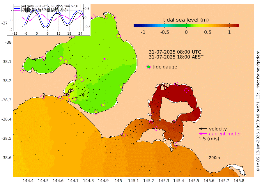100cm San Remo 102cm Elizabeth Island 122cm Bouchier Channel 118cm Tooradin 94cm Cowes Jetty 100cm Western Port (Stony Point) 117cm Western Port (Sandy Point) 65cm Flinders Jetty 25cm Mornington 27cm Sandringham 24cm Rosebud Jetty 24cm Hovell Pile 26cm South Channel 37cm Point Lonsdale 29cm Queenscliff 25cm West Channel Pile 42cm Barwon Heads 27cm St Leonards 28cm Point Richards (Corio Bay) 29cm Point Richards Channel 28cm Geelong 24cm Werribee 27cm Altona 31cm Wilson Spit 26cm Melbourne (Williamstown) 27cm St Kilda