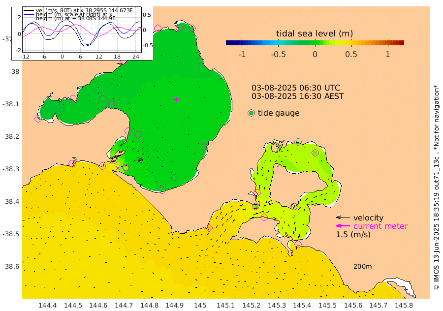 40cm San Remo 32cm Elizabeth Island 14cm Bouchier Channel 4cm Tooradin 44cm Cowes Jetty 41cm Western Port (Stony Point) 13cm Western Port (Sandy Point) 61cm Flinders Jetty 0cm Mornington -3cm Sandringham 0cm Rosebud Jetty -1cm Hovell Pile 17cm South Channel 39cm Point Lonsdale 25cm Queenscliff 0cm West Channel Pile 48cm Barwon Heads 1cm St Leonards -3cm Point Richards (Corio Bay) -1cm Point Richards Channel -6cm Geelong -4cm Werribee -3cm Altona -3cm Wilson Spit -3cm Melbourne (Williamstown) -3cm St Kilda