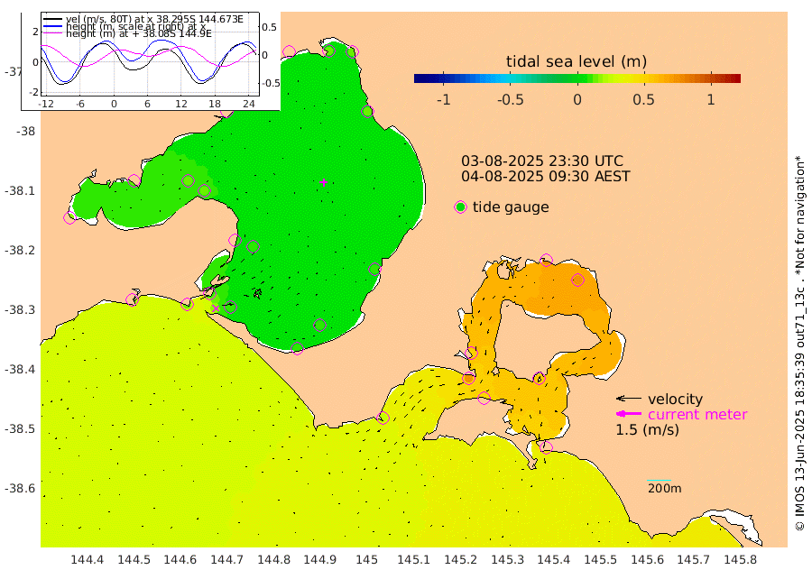 53cm San Remo 54cm Elizabeth Island 75cm Bouchier Channel 78cm Tooradin 45cm Cowes Jetty 51cm Western Port (Stony Point) 74cm Western Port (Sandy Point) 23cm Flinders Jetty 8cm Mornington 11cm Sandringham 8cm Rosebud Jetty 11cm Hovell Pile 11cm South Channel 12cm Point Lonsdale 9cm Queenscliff 11cm West Channel Pile 13cm Barwon Heads 10cm St Leonards 14cm Point Richards (Corio Bay) 12cm Point Richards Channel 15cm Geelong 12cm Werribee 12cm Altona 13cm Wilson Spit 13cm Melbourne (Williamstown) 13cm St Kilda