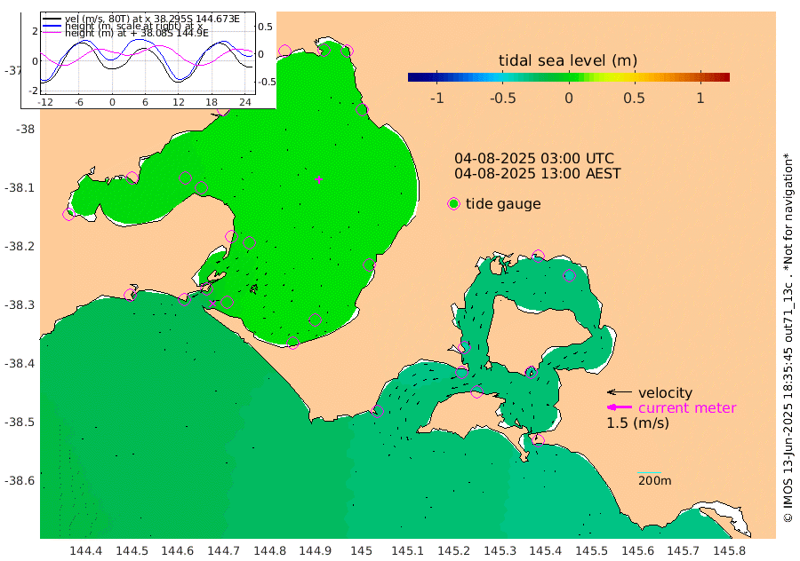 -40cm San Remo -37cm Elizabeth Island -41cm Bouchier Channel -38cm Tooradin -36cm Cowes Jetty -38cm Western Port (Stony Point) -37cm Western Port (Sandy Point) -30cm Flinders Jetty 5cm Mornington 3cm Sandringham 5cm Rosebud Jetty 5cm Hovell Pile -1cm South Channel -10cm Point Lonsdale -3cm Queenscliff 5cm West Channel Pile -18cm Barwon Heads 4cm St Leonards 5cm Point Richards (Corio Bay) 4cm Point Richards Channel 5cm Geelong 6cm Werribee 3cm Altona 4cm Wilson Spit 5cm Melbourne (Williamstown) 5cm St Kilda