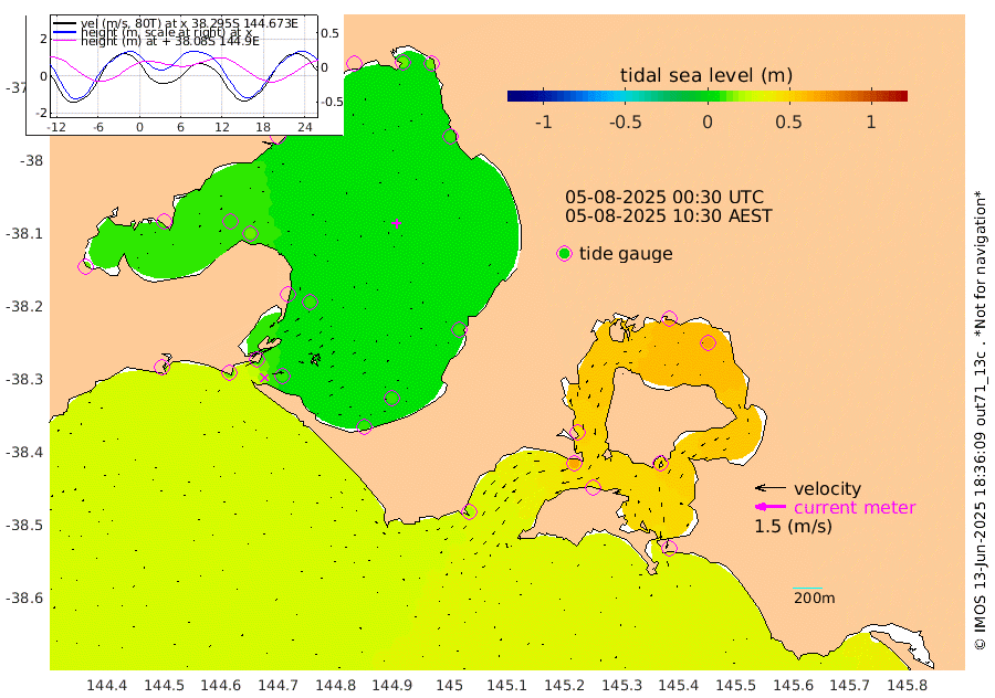 46cm San Remo 46cm Elizabeth Island 65cm Bouchier Channel 67cm Tooradin 38cm Cowes Jetty 44cm Western Port (Stony Point) 65cm Western Port (Sandy Point) 20cm Flinders Jetty 8cm Mornington 11cm Sandringham 8cm Rosebud Jetty 10cm Hovell Pile 10cm South Channel 13cm Point Lonsdale 9cm Queenscliff 11cm West Channel Pile 14cm Barwon Heads 9cm St Leonards 13cm Point Richards (Corio Bay) 11cm Point Richards Channel 14cm Geelong 10cm Werribee 12cm Altona 12cm Wilson Spit 12cm Melbourne (Williamstown) 12cm St Kilda