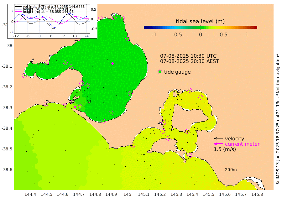 40cm San Remo 42cm Elizabeth Island 33cm Bouchier Channel 27cm Tooradin 36cm Cowes Jetty 38cm Western Port (Stony Point) 35cm Western Port (Sandy Point) 37cm Flinders Jetty 9cm Mornington 9cm Sandringham 11cm Rosebud Jetty 11cm Hovell Pile 16cm South Channel 21cm Point Lonsdale 19cm Queenscliff 10cm West Channel Pile 22cm Barwon Heads 9cm St Leonards 10cm Point Richards (Corio Bay) 9cm Point Richards Channel 8cm Geelong 7cm Werribee 9cm Altona 8cm Wilson Spit 9cm Melbourne (Williamstown) 9cm St Kilda