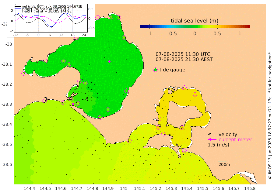 46cm San Remo 48cm Elizabeth Island 47cm Bouchier Channel 43cm Tooradin 38cm Cowes Jetty 43cm Western Port (Stony Point) 50cm Western Port (Sandy Point) 30cm Flinders Jetty 11cm Mornington 12cm Sandringham 13cm Rosebud Jetty 13cm Hovell Pile 15cm South Channel 17cm Point Lonsdale 17cm Queenscliff 13cm West Channel Pile 19cm Barwon Heads 11cm St Leonards 13cm Point Richards (Corio Bay) 12cm Point Richards Channel 12cm Geelong 10cm Werribee 12cm Altona 12cm Wilson Spit 13cm Melbourne (Williamstown) 13cm St Kilda