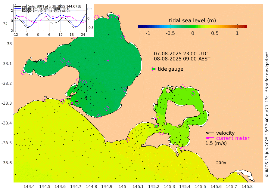 28cm San Remo 21cm Elizabeth Island 11cm Bouchier Channel 5cm Tooradin 28cm Cowes Jetty 26cm Western Port (Stony Point) 9cm Western Port (Sandy Point) 43cm Flinders Jetty -25cm Mornington -25cm Sandringham -24cm Rosebud Jetty -24cm Hovell Pile -6cm South Channel 17cm Point Lonsdale 0cm Queenscliff -24cm West Channel Pile 33cm Barwon Heads -22cm St Leonards -26cm Point Richards (Corio Bay) -25cm Point Richards Channel -28cm Geelong -27cm Werribee -25cm Altona -26cm Wilson Spit -26cm Melbourne (Williamstown) -26cm St Kilda