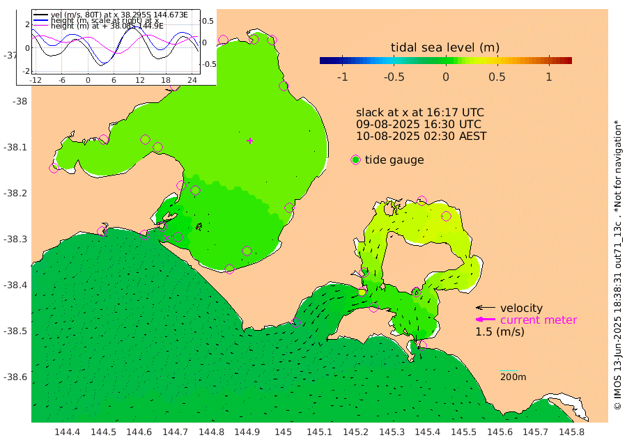 6cm San Remo 8cm Elizabeth Island 24cm Bouchier Channel 30cm Tooradin -1cm Cowes Jetty 3cm Western Port (Stony Point) 28cm Western Port (Sandy Point) -26cm Flinders Jetty 13cm Mornington 14cm Sandringham 12cm Rosebud Jetty 13cm Hovell Pile 1cm South Channel -13cm Point Lonsdale -4cm Queenscliff 13cm West Channel Pile -19cm Barwon Heads 12cm St Leonards 16cm Point Richards (Corio Bay) 15cm Point Richards Channel 18cm Geelong 15cm Werribee 15cm Altona 16cm Wilson Spit 16cm Melbourne (Williamstown) 16cm St Kilda