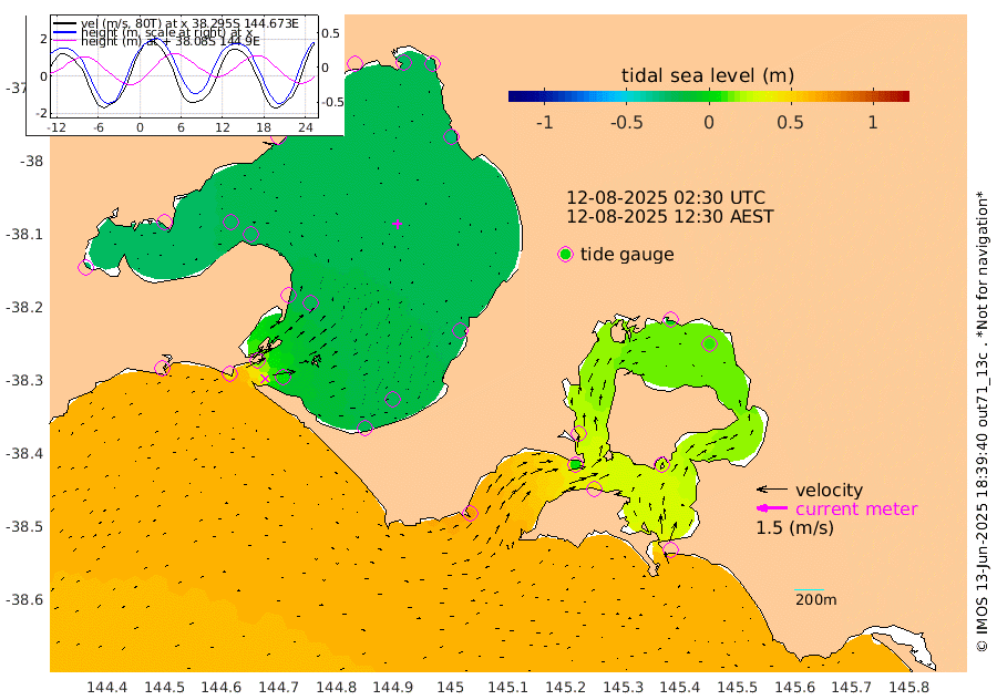 42cm San Remo 26cm Elizabeth Island 9cm Bouchier Channel -6cm Tooradin 43cm Cowes Jetty 39cm Western Port (Stony Point) 6cm Western Port (Sandy Point) 68cm Flinders Jetty -22cm Mornington -26cm Sandringham -22cm Rosebud Jetty -21cm Hovell Pile 5cm South Channel 39cm Point Lonsdale 15cm Queenscliff -21cm West Channel Pile 61cm Barwon Heads -20cm St Leonards -25cm Point Richards (Corio Bay) -23cm Point Richards Channel -29cm Geelong -25cm Werribee -25cm Altona -25cm Wilson Spit -25cm Melbourne (Williamstown) -25cm St Kilda