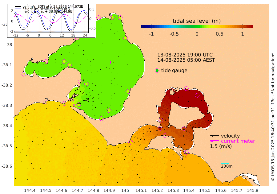100cm San Remo 103cm Elizabeth Island 121cm Bouchier Channel 121cm Tooradin 89cm Cowes Jetty 94cm Western Port (Stony Point) 124cm Western Port (Sandy Point) 53cm Flinders Jetty 20cm Mornington 24cm Sandringham 21cm Rosebud Jetty 21cm Hovell Pile 23cm South Channel 29cm Point Lonsdale 23cm Queenscliff 22cm West Channel Pile 29cm Barwon Heads 22cm St Leonards 26cm Point Richards (Corio Bay) 25cm Point Richards Channel 27cm Geelong 19cm Werribee 25cm Altona 25cm Wilson Spit 24cm Melbourne (Williamstown) 25cm St Kilda