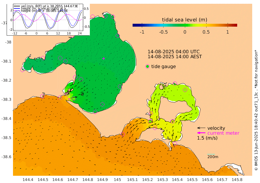 55cm San Remo 36cm Elizabeth Island 16cm Bouchier Channel -1cm Tooradin 57cm Cowes Jetty 53cm Western Port (Stony Point) 12cm Western Port (Sandy Point) 85cm Flinders Jetty -16cm Mornington -20cm Sandringham -15cm Rosebud Jetty -15cm Hovell Pile 13cm South Channel 51cm Point Lonsdale 25cm Queenscliff -15cm West Channel Pile 72cm Barwon Heads -13cm St Leonards -19cm Point Richards (Corio Bay) -16cm Point Richards Channel -23cm Geelong -17cm Werribee -19cm Altona -18cm Wilson Spit -19cm Melbourne (Williamstown) -18cm St Kilda