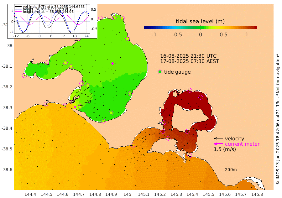 111cm San Remo 119cm Elizabeth Island 140cm Bouchier Channel 141cm Tooradin 101cm Cowes Jetty 107cm Western Port (Stony Point) 141cm Western Port (Sandy Point) 61cm Flinders Jetty 19cm Mornington 23cm Sandringham 18cm Rosebud Jetty 19cm Hovell Pile 23cm South Channel 31cm Point Lonsdale 23cm Queenscliff 20cm West Channel Pile 33cm Barwon Heads 21cm St Leonards 24cm Point Richards (Corio Bay) 23cm Point Richards Channel 25cm Geelong 16cm Werribee 23cm Altona 24cm Wilson Spit 22cm Melbourne (Williamstown) 23cm St Kilda