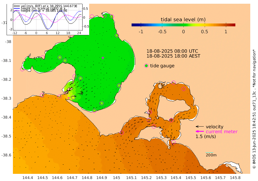100cm San Remo 94cm Elizabeth Island 86cm Bouchier Channel 74cm Tooradin 97cm Cowes Jetty 98cm Western Port (Stony Point) 82cm Western Port (Sandy Point) 97cm Flinders Jetty 12cm Mornington 12cm Sandringham 13cm Rosebud Jetty 12cm Hovell Pile 30cm South Channel 55cm Point Lonsdale 39cm Queenscliff 13cm West Channel Pile 65cm Barwon Heads 14cm St Leonards 12cm Point Richards (Corio Bay) 13cm Point Richards Channel 9cm Geelong 11cm Werribee 11cm Altona 12cm Wilson Spit 11cm Melbourne (Williamstown) 12cm St Kilda