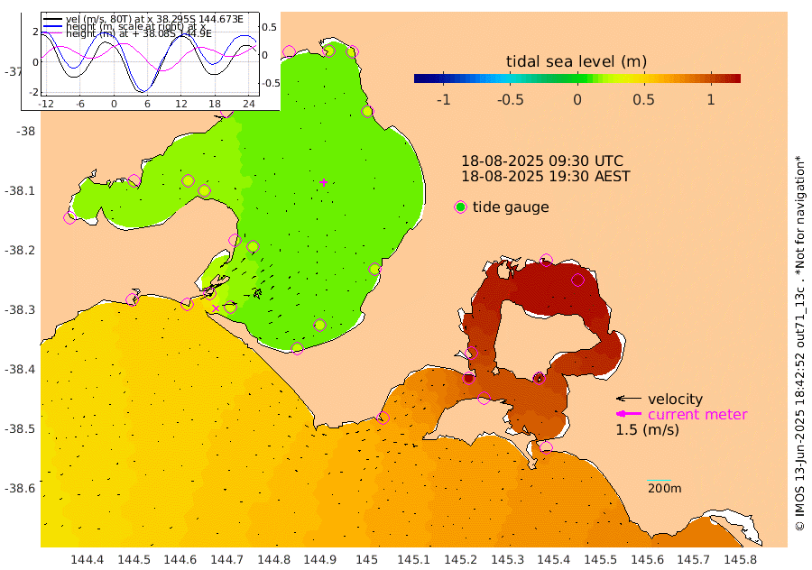 104cm San Remo 110cm Elizabeth Island 120cm Bouchier Channel 116cm Tooradin 93cm Cowes Jetty 100cm Western Port (Stony Point) 121cm Western Port (Sandy Point) 64cm Flinders Jetty 26cm Mornington 27cm Sandringham 26cm Rosebud Jetty 25cm Hovell Pile 28cm South Channel 34cm Point Lonsdale 29cm Queenscliff 26cm West Channel Pile 37cm Barwon Heads 27cm St Leonards 29cm Point Richards (Corio Bay) 28cm Point Richards Channel 29cm Geelong 24cm Werribee 27cm Altona 30cm Wilson Spit 27cm Melbourne (Williamstown) 28cm St Kilda
