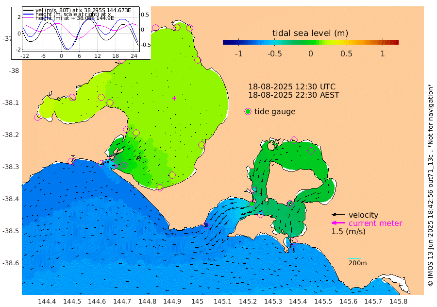 -43cm San Remo -26cm Elizabeth Island -2cm Bouchier Channel 13cm Tooradin -54cm Cowes Jetty -46cm Western Port (Stony Point) 7cm Western Port (Sandy Point) -91cm Flinders Jetty 22cm Mornington 22cm Sandringham 20cm Rosebud Jetty 20cm Hovell Pile -12cm South Channel -54cm Point Lonsdale -25cm Queenscliff 19cm West Channel Pile -69cm Barwon Heads 18cm St Leonards 24cm Point Richards (Corio Bay) 23cm Point Richards Channel 29cm Geelong 20cm Werribee 23cm Altona 26cm Wilson Spit 24cm Melbourne (Williamstown) 24cm St Kilda