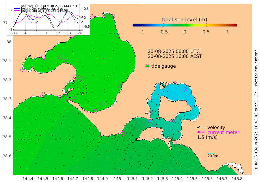 -36cm San Remo -38cm Elizabeth Island -56cm Bouchier Channel -59cm Tooradin -26cm Cowes Jetty -32cm Western Port (Stony Point) -57cm Western Port (Sandy Point) -3cm Flinders Jetty 2cm Mornington 1cm Sandringham 3cm Rosebud Jetty 1cm Hovell Pile 4cm South Channel 6cm Point Lonsdale 7cm Queenscliff 1cm West Channel Pile -1cm Barwon Heads 1cm St Leonards -1cm Point Richards (Corio Bay) -1cm Point Richards Channel -2cm Geelong 1cm Werribee 0cm Altona -2cm Wilson Spit -1cm Melbourne (Williamstown) -1cm St Kilda