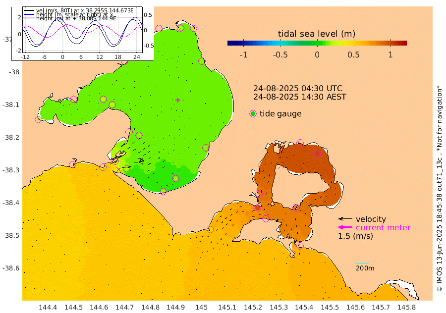 81cm San Remo 79cm Elizabeth Island 99cm Bouchier Channel 92cm Tooradin 76cm Cowes Jetty 79cm Western Port (Stony Point) 95cm Western Port (Sandy Point) 52cm Flinders Jetty 18cm Mornington 18cm Sandringham 16cm Rosebud Jetty 17cm Hovell Pile 22cm South Channel 34cm Point Lonsdale 23cm Queenscliff 18cm West Channel Pile 39cm Barwon Heads 19cm St Leonards 21cm Point Richards (Corio Bay) 22cm Point Richards Channel 21cm Geelong 16cm Werribee 20cm Altona 22cm Wilson Spit 19cm Melbourne (Williamstown) 20cm St Kilda
