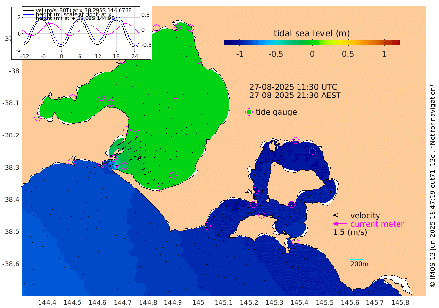 -110cm San Remo -100cm Elizabeth Island -105cm Bouchier Channel -96cm Tooradin -107cm Cowes Jetty -107cm Western Port (Stony Point) -101cm Western Port (Sandy Point) -96cm Flinders Jetty -7cm Mornington -7cm Sandringham -7cm Rosebud Jetty -7cm Hovell Pile -27cm South Channel -57cm Point Lonsdale -35cm Queenscliff -9cm West Channel Pile -68cm Barwon Heads -10cm St Leonards -9cm Point Richards (Corio Bay) -10cm Point Richards Channel -7cm Geelong -8cm Werribee -8cm Altona -10cm Wilson Spit -8cm Melbourne (Williamstown) -9cm St Kilda