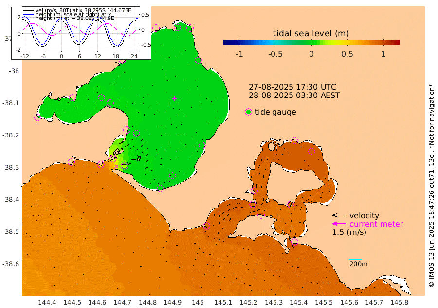 98cm San Remo 86cm Elizabeth Island 92cm Bouchier Channel 83cm Tooradin 96cm Cowes Jetty 95cm Western Port (Stony Point) 85cm Western Port (Sandy Point) 88cm Flinders Jetty 0cm Mornington 2cm Sandringham 0cm Rosebud Jetty 2cm Hovell Pile 22cm South Channel 51cm Point Lonsdale 29cm Queenscliff 3cm West Channel Pile 63cm Barwon Heads 3cm St Leonards 3cm Point Richards (Corio Bay) 3cm Point Richards Channel 2cm Geelong 4cm Werribee 3cm Altona 1cm Wilson Spit 2cm Melbourne (Williamstown) 3cm St Kilda