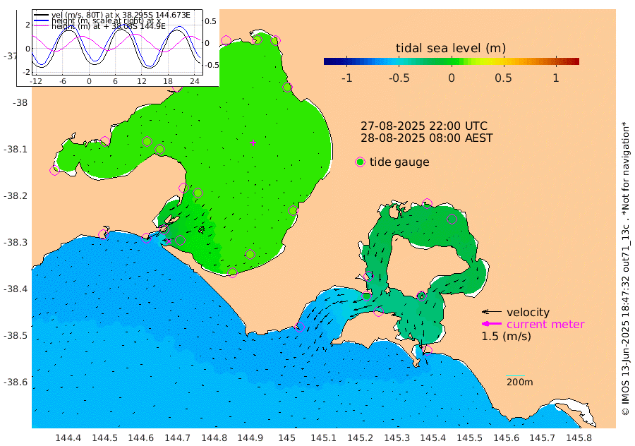 -43cm San Remo -26cm Elizabeth Island -16cm Bouchier Channel -1cm Tooradin -43cm Cowes Jetty -41cm Western Port (Stony Point) -9cm Western Port (Sandy Point) -65cm Flinders Jetty 14cm Mornington 14cm Sandringham 12cm Rosebud Jetty 12cm Hovell Pile -10cm South Channel -40cm Point Lonsdale -19cm Queenscliff 12cm West Channel Pile -57cm Barwon Heads 12cm St Leonards 15cm Point Richards (Corio Bay) 13cm Point Richards Channel 18cm Geelong 14cm Werribee 14cm Altona 15cm Wilson Spit 15cm Melbourne (Williamstown) 15cm St Kilda
