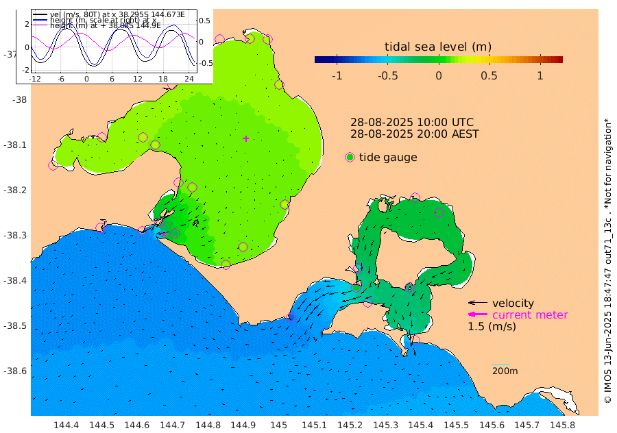 -48cm San Remo -28cm Elizabeth Island -9cm Bouchier Channel 4cm Tooradin -51cm Cowes Jetty -46cm Western Port (Stony Point) -6cm Western Port (Sandy Point) -78cm Flinders Jetty 20cm Mornington 21cm Sandringham 18cm Rosebud Jetty 17cm Hovell Pile -12cm South Channel -49cm Point Lonsdale -23cm Queenscliff 16cm West Channel Pile -64cm Barwon Heads 17cm St Leonards 21cm Point Richards (Corio Bay) 20cm Point Richards Channel 24cm Geelong 18cm Werribee 20cm Altona 23cm Wilson Spit 20cm Melbourne (Williamstown) 20cm St Kilda