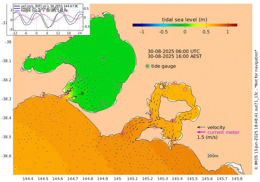 83cm San Remo 73cm Elizabeth Island 66cm Bouchier Channel 54cm Tooradin 83cm Cowes Jetty 82cm Western Port (Stony Point) 62cm Western Port (Sandy Point) 86cm Flinders Jetty 4cm Mornington 3cm Sandringham 4cm Rosebud Jetty 4cm Hovell Pile 24cm South Channel 52cm Point Lonsdale 33cm Queenscliff 5cm West Channel Pile 64cm Barwon Heads 6cm St Leonards 3cm Point Richards (Corio Bay) 5cm Point Richards Channel 0cm Geelong 2cm Werribee 4cm Altona 4cm Wilson Spit 2cm Melbourne (Williamstown) 3cm St Kilda