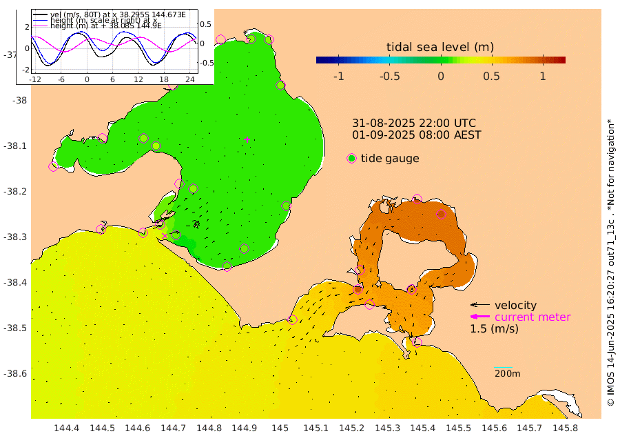 70cm San Remo 74cm Elizabeth Island 97cm Bouchier Channel 101cm Tooradin 62cm Cowes Jetty 69cm Western Port (Stony Point) 95cm Western Port (Sandy Point) 33cm Flinders Jetty 13cm Mornington 17cm Sandringham 13cm Rosebud Jetty 15cm Hovell Pile 15cm South Channel 17cm Point Lonsdale 13cm Queenscliff 16cm West Channel Pile 18cm Barwon Heads 15cm St Leonards 19cm Point Richards (Corio Bay) 17cm Point Richards Channel 20cm Geelong 16cm Werribee 18cm Altona 18cm Wilson Spit 17cm Melbourne (Williamstown) 18cm St Kilda