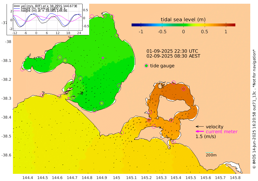70cm San Remo 72cm Elizabeth Island 93cm Bouchier Channel 96cm Tooradin 61cm Cowes Jetty 69cm Western Port (Stony Point) 92cm Western Port (Sandy Point) 36cm Flinders Jetty 10cm Mornington 14cm Sandringham 10cm Rosebud Jetty 12cm Hovell Pile 14cm South Channel 19cm Point Lonsdale 13cm Queenscliff 13cm West Channel Pile 22cm Barwon Heads 12cm St Leonards 15cm Point Richards (Corio Bay) 14cm Point Richards Channel 16cm Geelong 12cm Werribee 15cm Altona 15cm Wilson Spit 14cm Melbourne (Williamstown) 15cm St Kilda