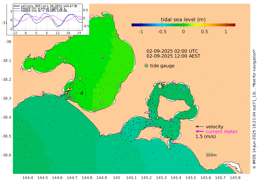 -41cm San Remo -38cm Elizabeth Island -35cm Bouchier Channel -31cm Tooradin -40cm Cowes Jetty -38cm Western Port (Stony Point) -33cm Western Port (Sandy Point) -37cm Flinders Jetty 8cm Mornington 8cm Sandringham 9cm Rosebud Jetty 9cm Hovell Pile -1cm South Channel -14cm Point Lonsdale -4cm Queenscliff 9cm West Channel Pile -24cm Barwon Heads 7cm St Leonards 9cm Point Richards (Corio Bay) 8cm Point Richards Channel 10cm Geelong 10cm Werribee 8cm Altona 8cm Wilson Spit 10cm Melbourne (Williamstown) 9cm St Kilda