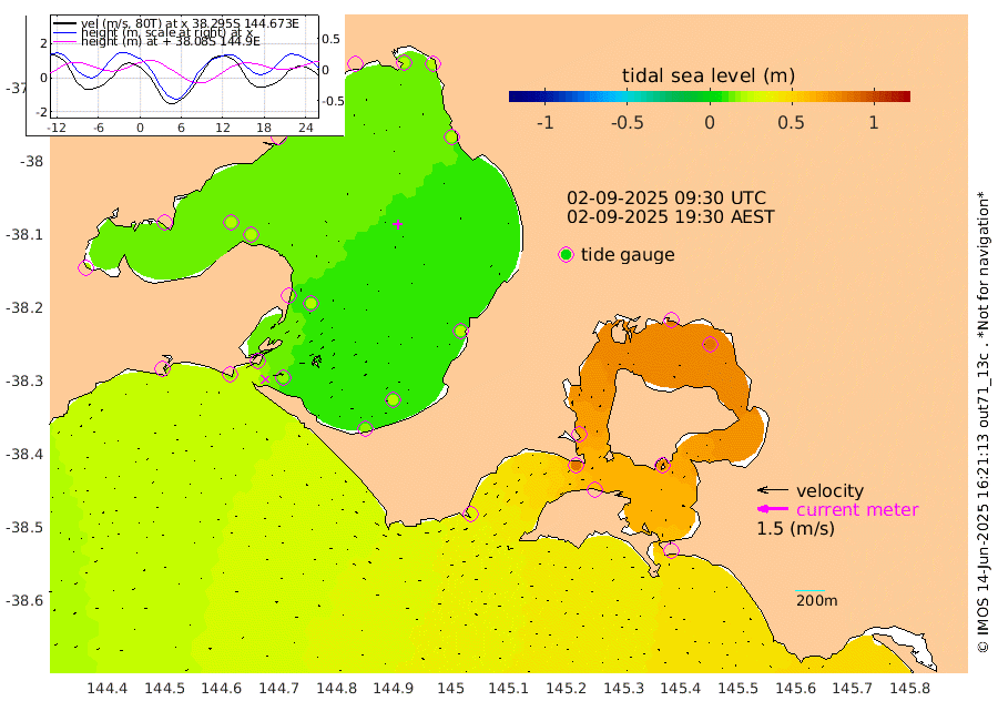 65cm San Remo 71cm Elizabeth Island 83cm Bouchier Channel 83cm Tooradin 58cm Cowes Jetty 64cm Western Port (Stony Point) 83cm Western Port (Sandy Point) 32cm Flinders Jetty 19cm Mornington 20cm Sandringham 18cm Rosebud Jetty 19cm Hovell Pile 17cm South Channel 16cm Point Lonsdale 17cm Queenscliff 20cm West Channel Pile 18cm Barwon Heads 19cm St Leonards 22cm Point Richards (Corio Bay) 21cm Point Richards Channel 22cm Geelong 18cm Werribee 20cm Altona 22cm Wilson Spit 20cm Melbourne (Williamstown) 21cm St Kilda