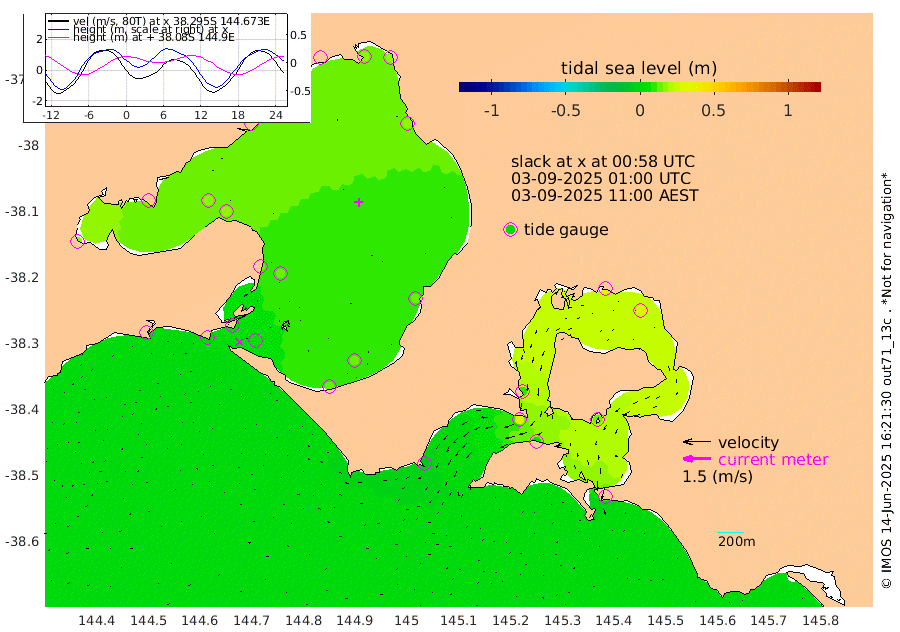 10cm San Remo 14cm Elizabeth Island 31cm Bouchier Channel 35cm Tooradin 4cm Cowes Jetty 11cm Western Port (Stony Point) 32cm Western Port (Sandy Point) -10cm Flinders Jetty 13cm Mornington 15cm Sandringham 13cm Rosebud Jetty 14cm Hovell Pile 7cm South Channel -1cm Point Lonsdale 4cm Queenscliff 15cm West Channel Pile -6cm Barwon Heads 13cm St Leonards 17cm Point Richards (Corio Bay) 15cm Point Richards Channel 19cm Geelong 14cm Werribee 16cm Altona 17cm Wilson Spit 16cm Melbourne (Williamstown) 16cm St Kilda