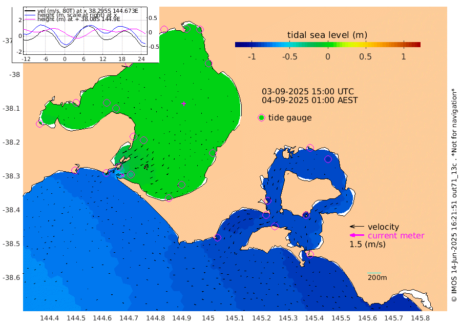 -98cm San Remo -94cm Elizabeth Island -91cm Bouchier Channel -80cm Tooradin -93cm Cowes Jetty -95cm Western Port (Stony Point) -89cm Western Port (Sandy Point) -91cm Flinders Jetty -6cm Mornington -7cm Sandringham -7cm Rosebud Jetty -7cm Hovell Pile -27cm South Channel -52cm Point Lonsdale -34cm Queenscliff -8cm West Channel Pile -62cm Barwon Heads -8cm St Leonards -7cm Point Richards (Corio Bay) -7cm Point Richards Channel -5cm Geelong -3cm Werribee -7cm Altona -7cm Wilson Spit -6cm Melbourne (Williamstown) -7cm St Kilda