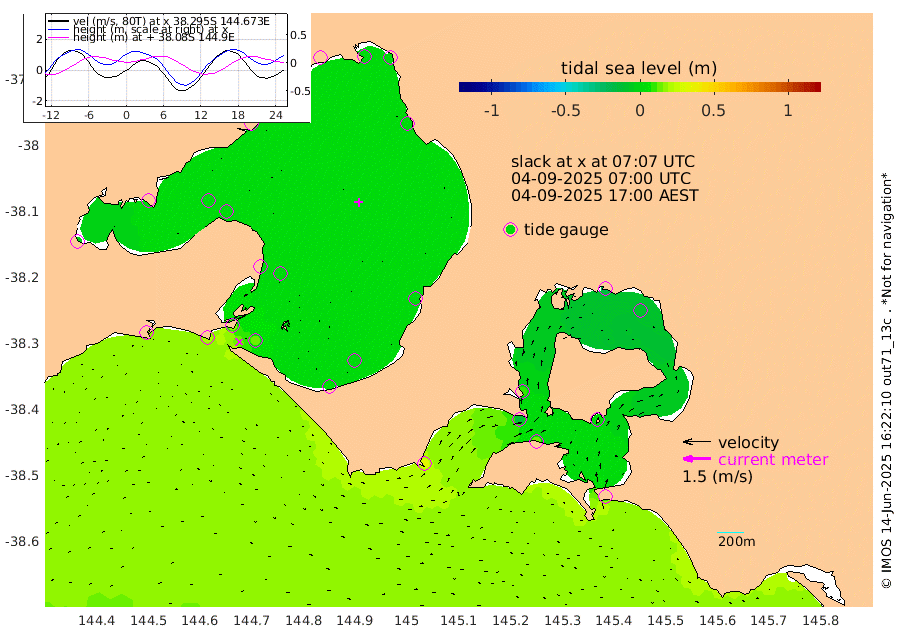9cm San Remo 7cm Elizabeth Island -10cm Bouchier Channel -17cm Tooradin 15cm Cowes Jetty 10cm Western Port (Stony Point) -11cm Western Port (Sandy Point) 30cm Flinders Jetty 3cm Mornington 2cm Sandringham 5cm Rosebud Jetty 3cm Hovell Pile 11cm South Channel 19cm Point Lonsdale 16cm Queenscliff 3cm West Channel Pile 18cm Barwon Heads 4cm St Leonards 2cm Point Richards (Corio Bay) 2cm Point Richards Channel 0cm Geelong 3cm Werribee 2cm Altona 1cm Wilson Spit 2cm Melbourne (Williamstown) 2cm St Kilda