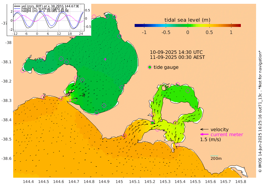 48cm San Remo 31cm Elizabeth Island 10cm Bouchier Channel -7cm Tooradin 47cm Cowes Jetty 43cm Western Port (Stony Point) 6cm Western Port (Sandy Point) 77cm Flinders Jetty -21cm Mornington -20cm Sandringham -17cm Rosebud Jetty -18cm Hovell Pile 10cm South Channel 46cm Point Lonsdale 20cm Queenscliff -18cm West Channel Pile 63cm Barwon Heads -18cm St Leonards -22cm Point Richards (Corio Bay) -21cm Point Richards Channel -26cm Geelong -22cm Werribee -21cm Altona -24cm Wilson Spit -22cm Melbourne (Williamstown) -22cm St Kilda