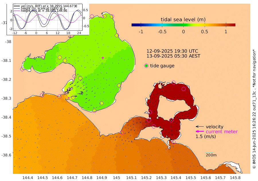 128cm San Remo 134cm Elizabeth Island 156cm Bouchier Channel 154cm Tooradin 119cm Cowes Jetty 123cm Western Port (Stony Point) 156cm Western Port (Sandy Point) 77cm Flinders Jetty 24cm Mornington 28cm Sandringham 23cm Rosebud Jetty 23cm Hovell Pile 29cm South Channel 42cm Point Lonsdale 31cm Queenscliff 25cm West Channel Pile 45cm Barwon Heads 26cm St Leonards 29cm Point Richards (Corio Bay) 28cm Point Richards Channel 30cm Geelong 21cm Werribee 28cm Altona 29cm Wilson Spit 27cm Melbourne (Williamstown) 28cm St Kilda