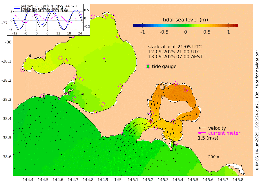 49cm San Remo 66cm Elizabeth Island 92cm Bouchier Channel 104cm Tooradin 40cm Cowes Jetty 47cm Western Port (Stony Point) 99cm Western Port (Sandy Point) -6cm Flinders Jetty 30cm Mornington 35cm Sandringham 29cm Rosebud Jetty 30cm Hovell Pile 14cm South Channel -4cm Point Lonsdale 7cm Queenscliff 30cm West Channel Pile -17cm Barwon Heads 30cm St Leonards 36cm Point Richards (Corio Bay) 34cm Point Richards Channel 40cm Geelong 28cm Werribee 35cm Altona 36cm Wilson Spit 34cm Melbourne (Williamstown) 35cm St Kilda